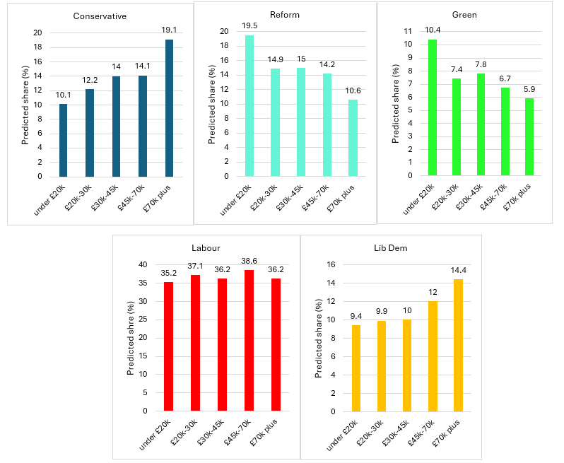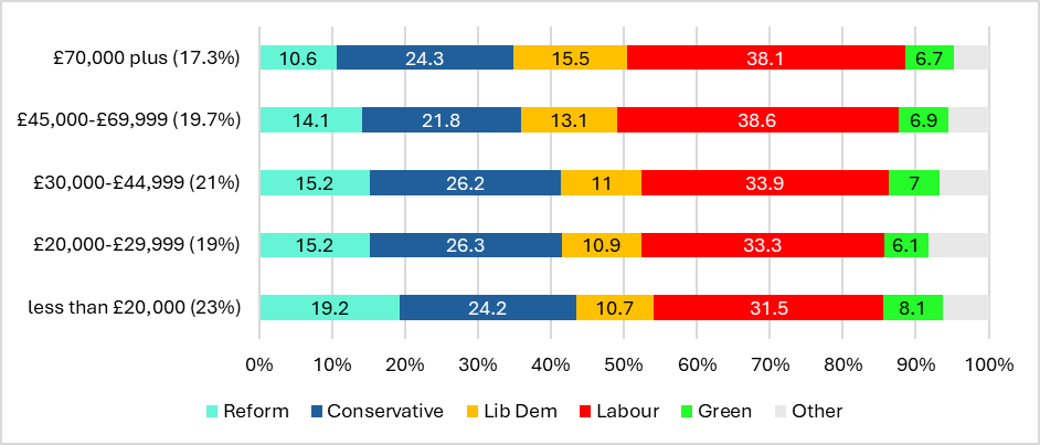 Figure 1: vote choice and income at the 2024 UK General Election. Source: BES